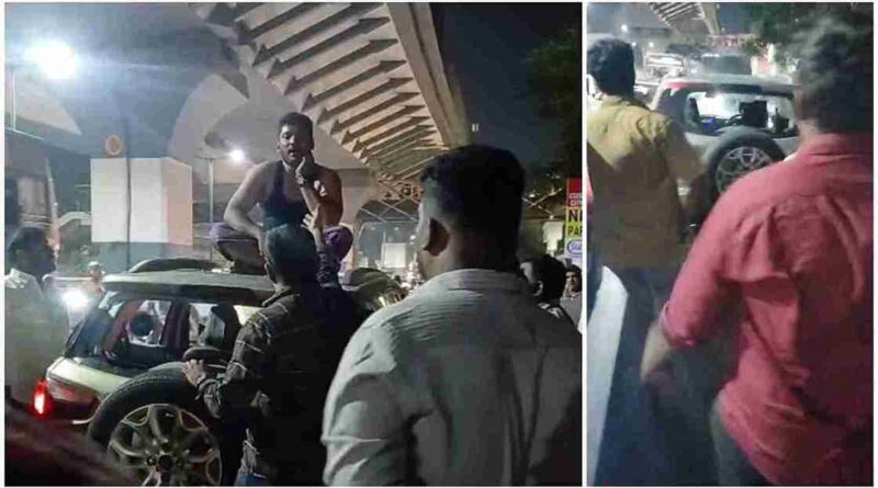 இதையடுத்து அங்கிருந்த வாகன ஓட்டிகள், பொதுமக்கள் அந்தக் காரைத் தடுத்து நிறுத்தினர், ஆனாலும் காரில் வந்த நபர் தொடர்ந்து வாகனத்தை இயக்க முற்பட்டதால் காரின் கண்ணாடிகளை உடைத்து ஓட்டுநரைப் பொதுமக்கள் வெளியே இழுத்தனர். இதையடுத்து அந்த நபர் திடிரெனக் காரின் மேல் பகுதியில் ஏறி நின்றதால் அங்குப் பரபரப்பான சூழல் ஏற்பட்டது.